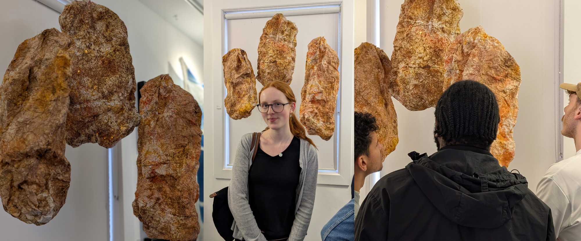 My name is Ella Squires. We're looking at three sculptures that aim to present decay and reflect the life cycles of both humans and plants. I was primarily inspired by nature. I observed rotting flowers and noticed how their process of decay and the lines created mirrored patterns on humans, such as handprints and subtle lines found underneath leaves. I began to see the connections between humans and nature and how we are both part of a shared life cycle.